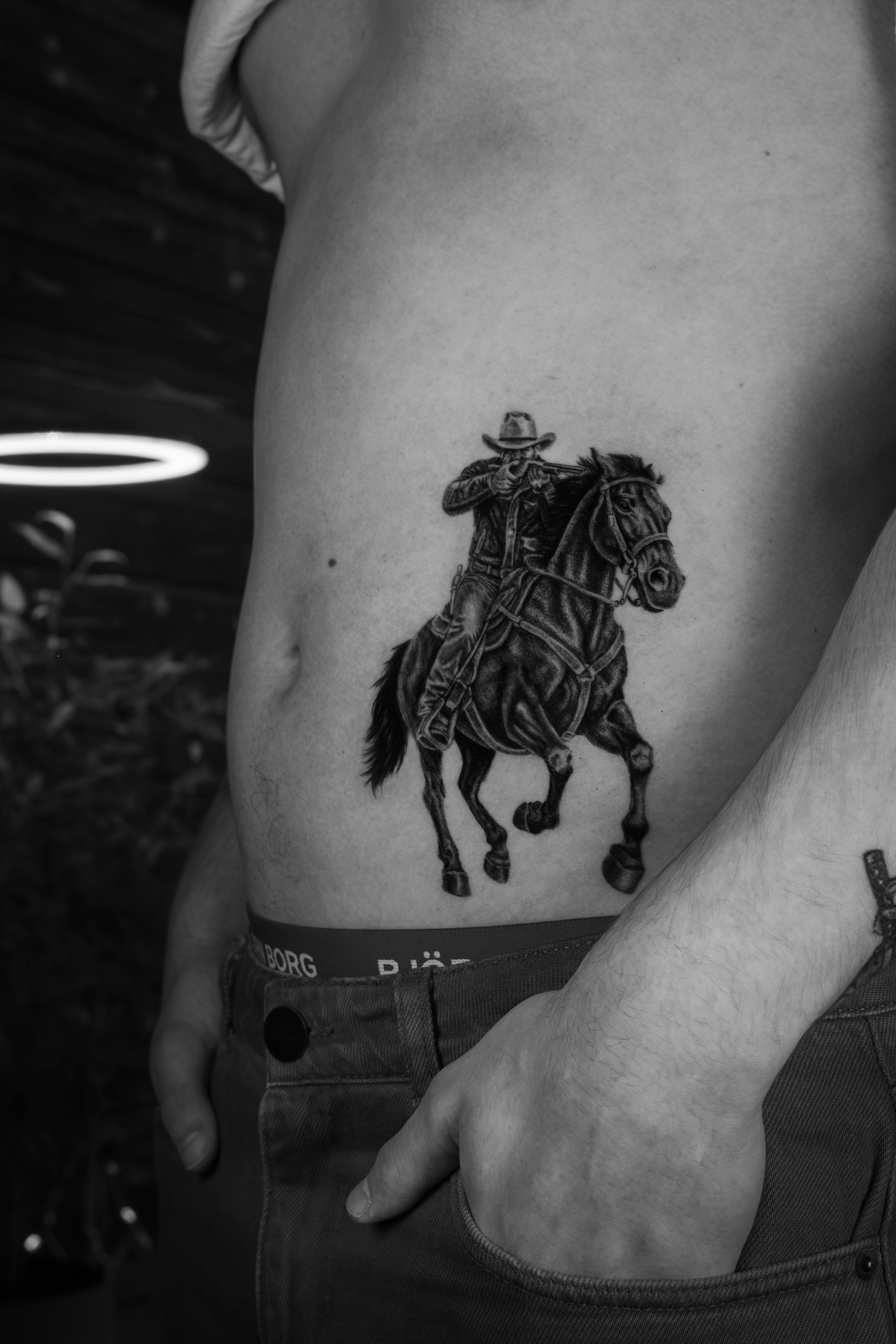 Your tattoo is always protected with a second-skin or cling wrap, depending on the size and the placement. This prevents bacteria from entering the fresh tattoo and minimizes the risk of infection.